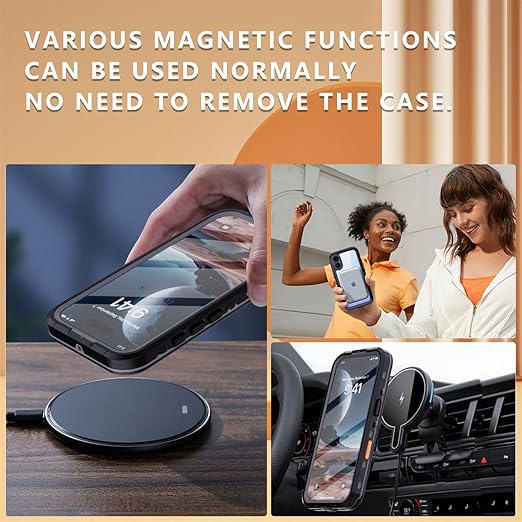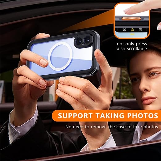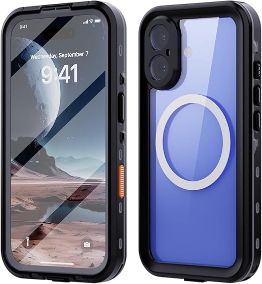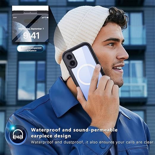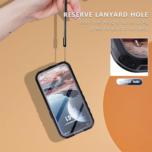 iPhone 16 ケース 完全防水 Magsafe対応 ストラップ付き 防水ケース カバー クリア 透明 アイフォン16 全面カバー 頑丈 耐衝撃 両面ケース 液晶画面保護 アウトドア,ブラック a