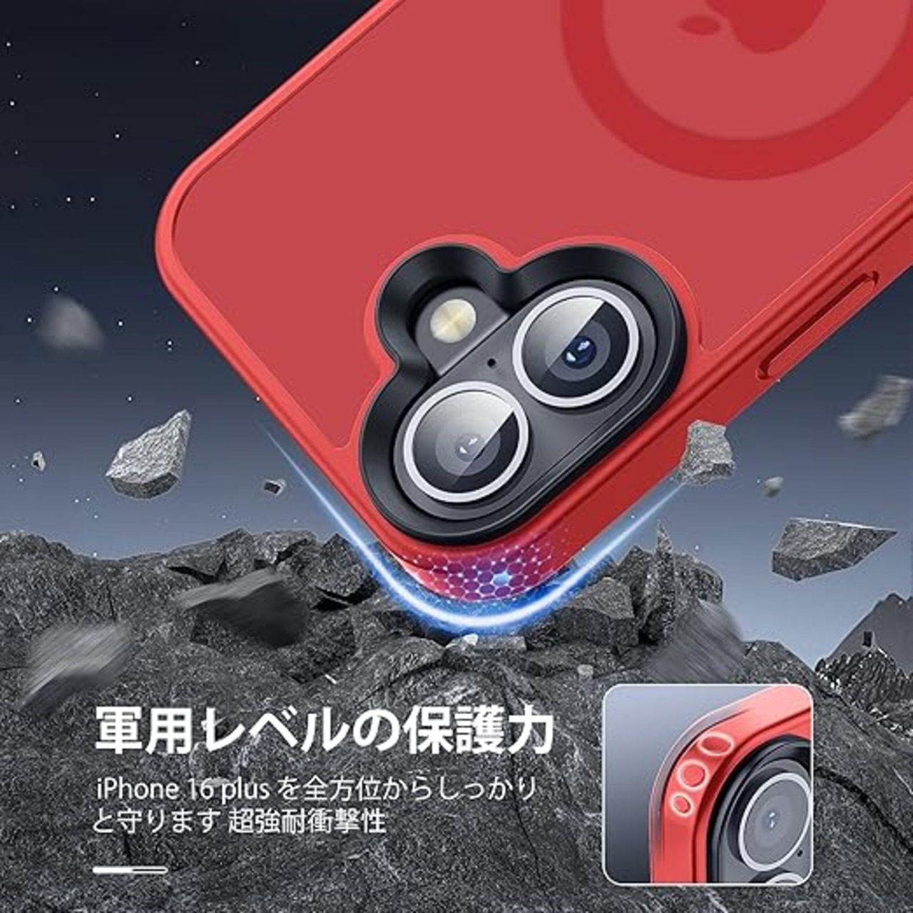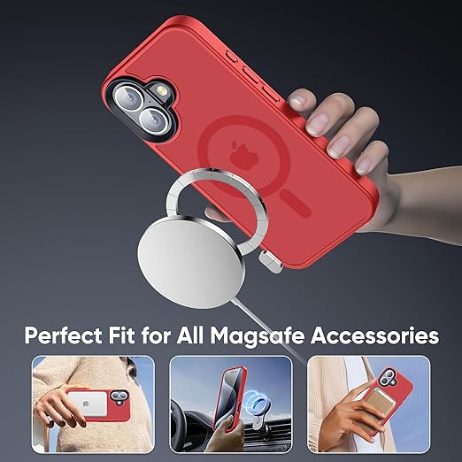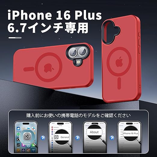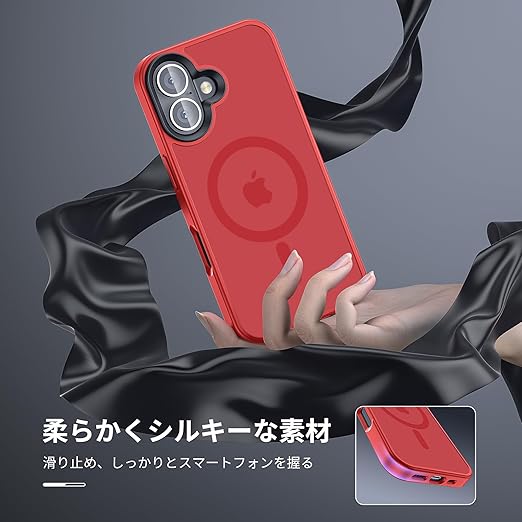 【米軍規格・MagSafe対応】Gtsoho iPhone 16 Plus ケース マグネット搭載 ワイヤレス充電 耐衝撃 耐久性 全面保護 黄ばみなし ストラップホール付き イフォン 16 Plus 用 カバー マグセーフ対応 レッド a