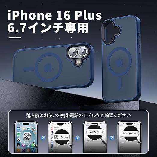 【米軍規格・MagSafe対応】Gtsoho iPhone 16 Plus ケース マグネット搭載 ワイヤレス充電 耐衝撃 耐久性 全面保護 黄ばみなし ストラップホール付き イフォン 16 Plus 用 カバー マグセーフ対応 あお a