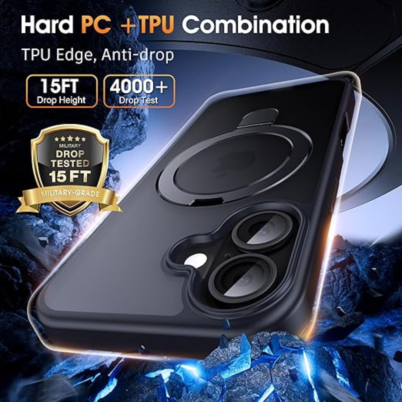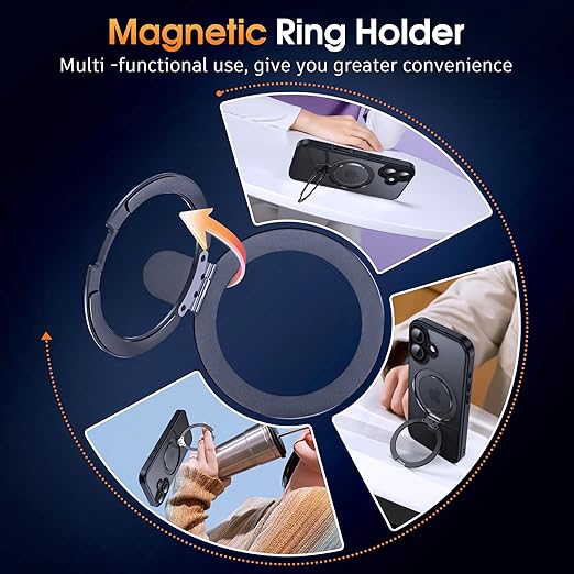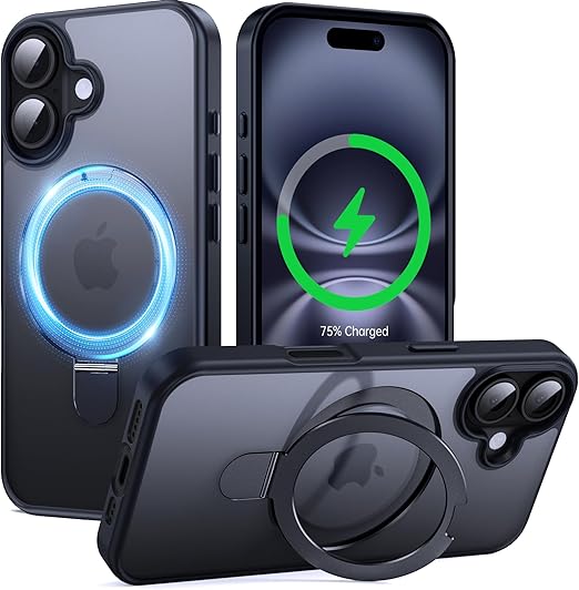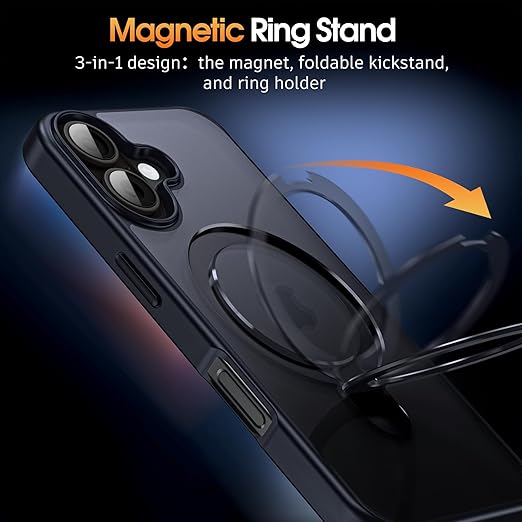 Supdeal iPhone 16 用 ケース magsafe対応 リングキックスタンド マット カバー スタンド 耐衝撃 米軍MIL規格 滑り止め 指紋防止 黄?防止 ワイヤレス充電 アイフォン 16 携帯電話のケース 6.1インチ (ブラック) a