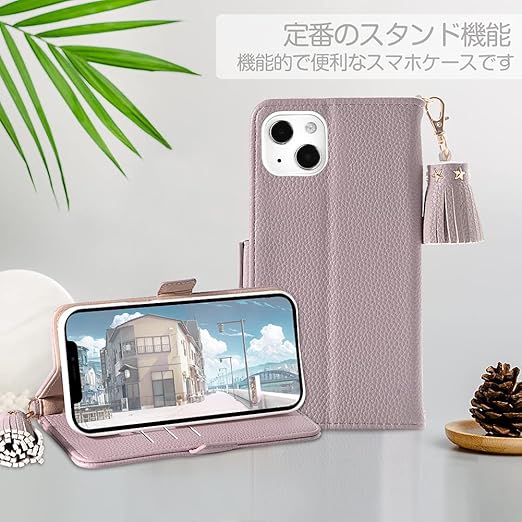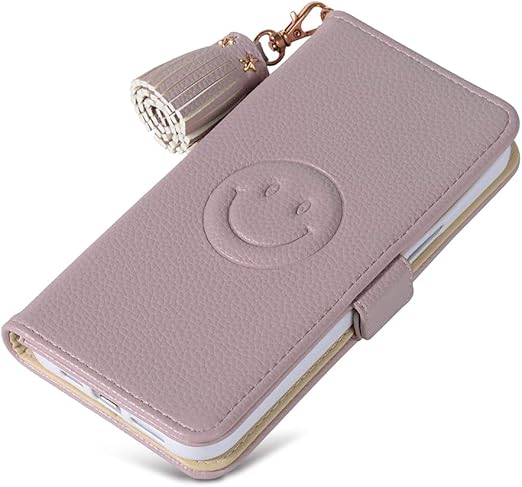iPhone 16Pro ケース手帳型 かわいい シンプル ケース 手帳型 おしゃれ iPhone 16Pro 携帯カバー 高級レザー iPhone 16プロ 手帳ケース タッセル アイフォン 16Pro ケース手帳型 smile 女性 16Pro 携帯カバー 全面保護 防汚シェル 笑顔 アイフォン 16プロ 財布型 横置きスタンド機能付き 電話ケース(スモークパープル) a