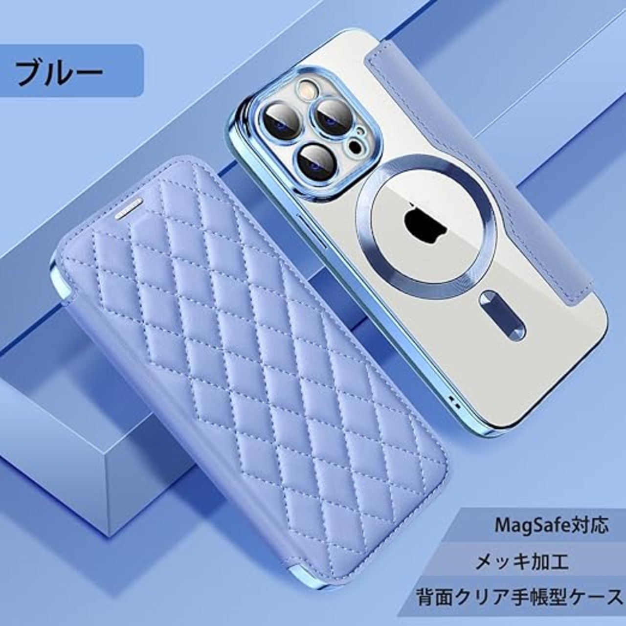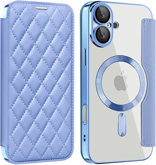 MuZiF iPhone 16 用 ケース 手帳型 Magsafe対応 クリア 背面 透明 キルティング 高級なPUレザー スマホケース カード収納 おしゃれ 韓国 人気財布型 カバー 軽量 アイフォン16 用 手帳カバー ケース (iPhone16用,ブルー) a