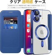 MuZiF iPhone 16 用 ケース 手帳型 Magsafe対応 クリア 背面 透明 キルティング 高級なPUレザー スマホケース カード収納 おしゃれ 韓国 人気財布型 カバー 軽量 アイフォン16 用 手帳カバー ケース (iPhone16用,ダークブルー) a
