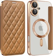 KeKeYou iPhone 16 用 ケース 手帳型 クリア Magsafe対応 背面透明 キルティング 高級なPUレザー スマホケース ゴージャス カード収納 おしゃれ 人気財布型 格子柄 カバー アイフォン16 用 手帳カバー ケース (iPhone16用,ブラウン) a