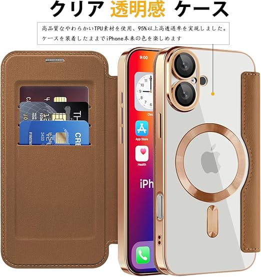 【対応機種】iPhone 16 用 手帳型 ケース はアイホン16 6.1インチ。MagSafe充電器とワイヤレス充電に対応。