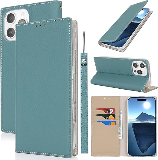 iPhone 16 Pro Max 用ケース アイフォン 16プロマックス 手帳型 アイホン16proMax カバー いPhone16proMax 手帳ケース iphone 16 pro max 手帳型ケース iphone16proMax スマホケース case 適用 zouzt 牛革 本革レザー 本皮 ストラップ付き カード収納 スタンド マグネット 耐衝撃 おしゃれ 6色 スカイブルー a