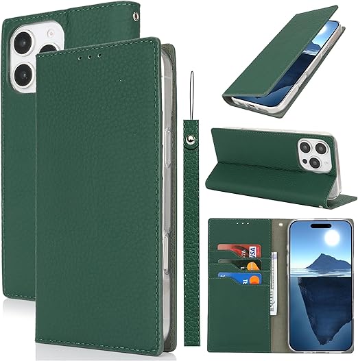 iPhone 16 Pro Max 用ケース アイフォン 16プロマックス 手帳型 アイホン16proMax カバー いPhone16proMax 手帳ケース iphone 16 pro max 手帳型ケース iphone16proMax スマホケース case 適用 zouzt 牛革 本革レザー 本皮 ストラップ付き カード収納 スタンド マグネット 耐衝撃 おしゃれ 6色 ダークグリーン a