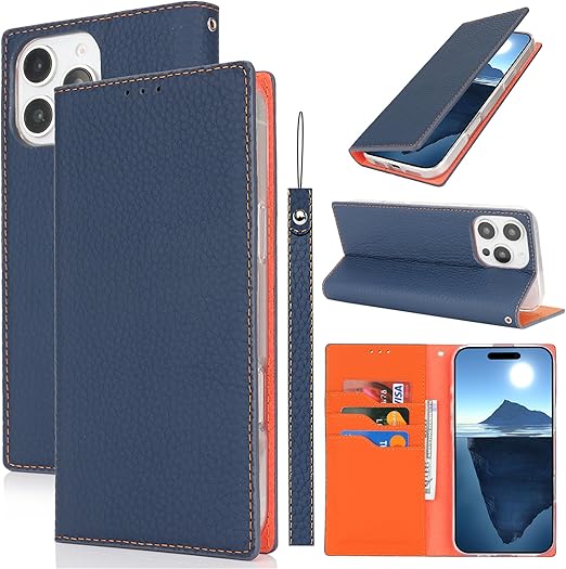 iPhone 16 Pro Max 用ケース アイフォン 16プロマックス 手帳型 アイホン16proMax カバー いPhone16proMax 手帳ケース iphone 16 pro max 手帳型ケース iphone16proMax スマホケース case 適用 zouzt 牛革 本革レザー 本皮 ストラップ付き カード収納 スタンド マグネット 耐衝撃 おしゃれ 6色 ダークブルー a