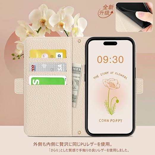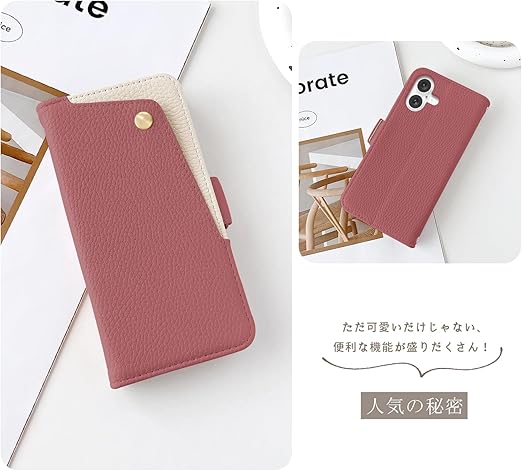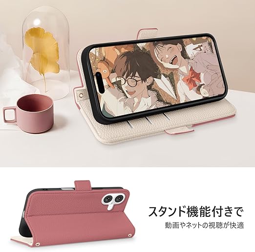 【対応機種】iPhone 16 手帳型ケース。対応機種と画面サイズをよくご確認のうえ、ご購入いただけますようお願い致します。専用カメラ穴が開いており、本製品を装着したまま、カメラでの撮影が可能です。