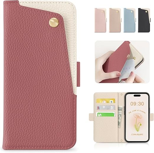 CASSYOOK iPhone 16 ケース 手帳型 おしゃれ iPhone16 手帳型ケース 携帯カバー アイフォン 16 ケース 手帳型 財布型 カード収納 スタンド機能 あいほん 16 ケース 手帳型 シンプル 軽量 耐衝撃 レディース アイフォン16 ケース 高級PUレザー 放熱性 汗や指紋防止 全面保護 耐汚れ(スイカレッド) a