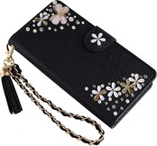 ★ケース特徴:マグネット開閉 ■カード収納あり■予備ストーン付き■動画鑑賞やデスクの上に置いて便利なスタンド機能、及びビジネスシーンや名刺など収納可能なカードホルダー付きです。一つ一つハンドメイドでストーンが取り付けられております。カメラ穴部分は機種ごとに開け、樹脂塗料にて仕上げてあります。留め具は