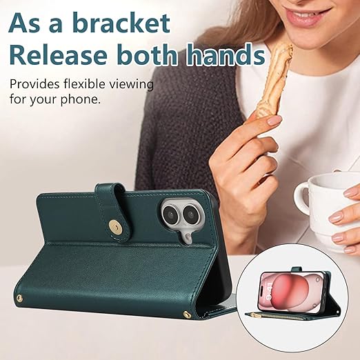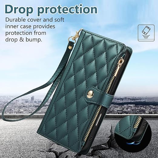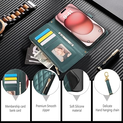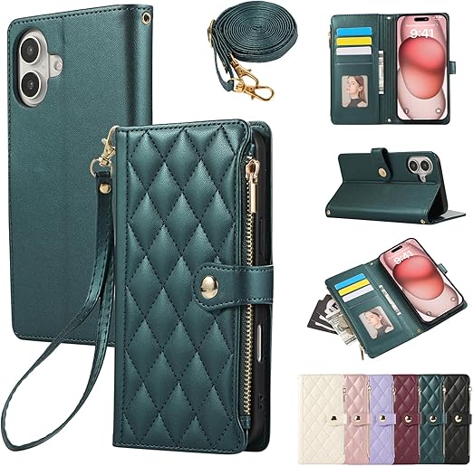 iPhone 16 用 ケース 手帳型 アイフォン16 ケース ショルダー スマホケース 対応 iPhone 16 ひし形柄 いphone16 ケース 人気 女性 肩掛け カード収納 ジップ付き財布 横置き機能 シンプル お洒落 携帯カバー(ダークグリーン) a