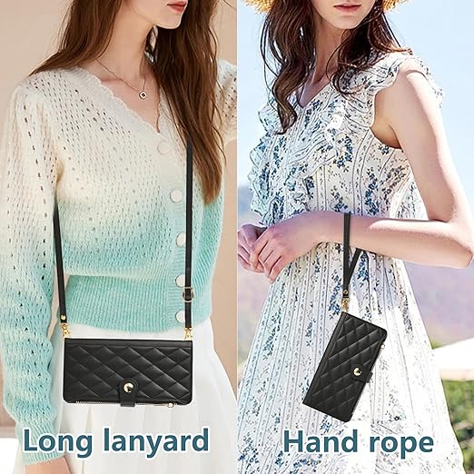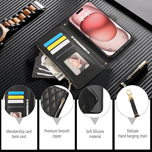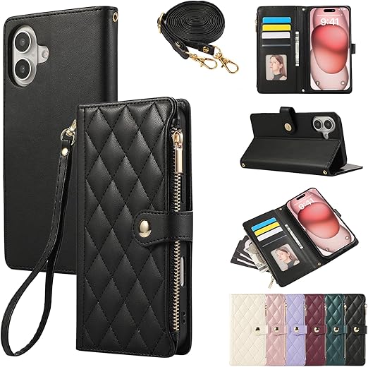 iPhone 16 用 ケース 手帳型 アイフォン16 ケース ショルダー スマホケース 対応 iPhone 16 ひし形柄 いphone16 ケース 人気 女性 肩掛け カード収納 ジップ付き財布 横置き機能 シンプル お洒落 携帯カバー (ブラック) a