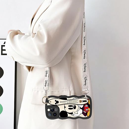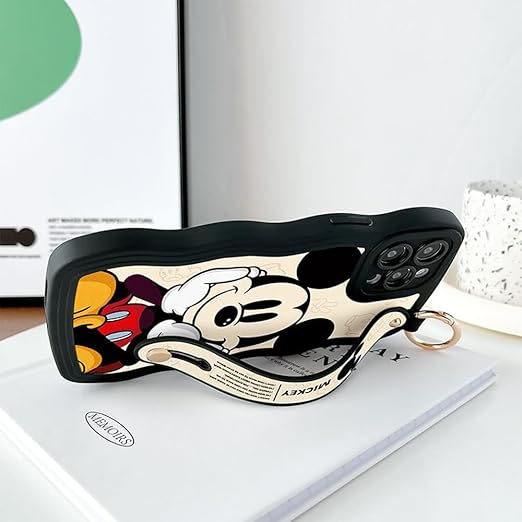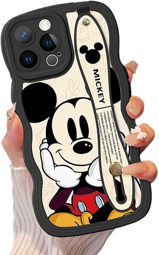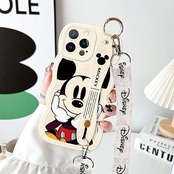 ミッキー スマホケース iPhone 16 Pro 用 ケース アイフォン 16 Pro 用 ケース 6.1インチ シリカゲル クリアケース リストレット ハンドストラップ iPhone用ケース バンパー レンズ保護 ワイヤレス充電対応 a