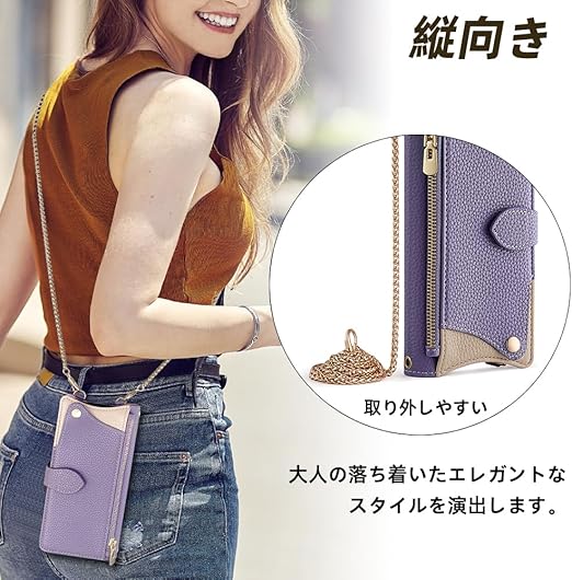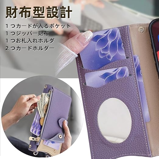 QANKISIS iphone16 ケース iphone 16 ケース 手帳型 鏡/ミラー付き 高級PUレザー マグネット式 スタンド機能 ストラップ付き 財布型 ショルダー 肩掛け 斜めがけ カバー 小銭入れ おしゃれ 横置 耐衝撃 全面保護 ポケットーパープル a