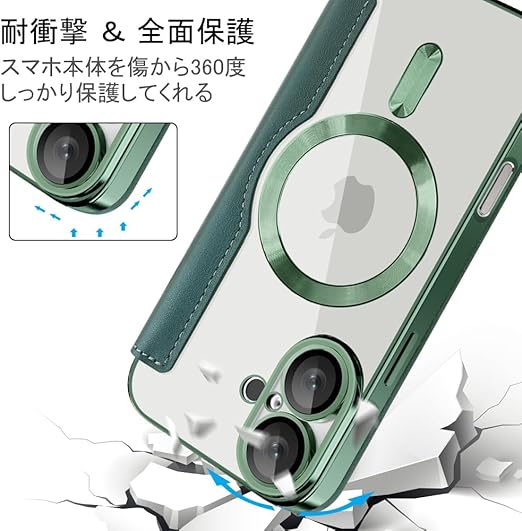 「MagSafe対応専用・強力な磁力吸着!」携帯をもっと便利に使いたいのですが、MagSafeに影響しないケースはありますか?これを試してみて! ケース内部は38個強力なマグネットを搭載、超吸着能力でいくら振っても落ちない。ワイヤレス充電だけでなく、Magsafe対応スタンド&リングも対応、リラックスした生活に重宝する。