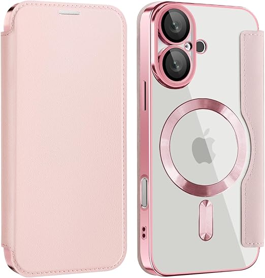 【REHOOF】iPhone 16 ケース 手帳型 magsafe対応 6.1インチ 背面 透明 クリア 財布型 アイフォン 16 ケース マグセーフ 手帳 ワイヤレス充電対応 カード入れ PU革 レザー スマホケース 軽量 薄型 防塵 耐衝撃 全面保護 スマホカバー(ピンク) a