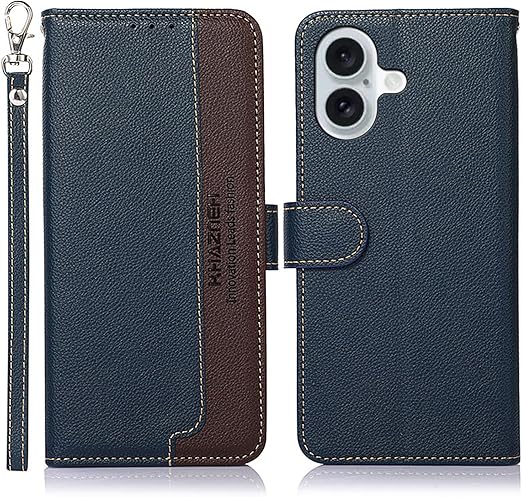 WANWO For iPhone 16 Plus ケース 手帳型 アイフォン 16 プラス カバー 財布型 ストラップ付き [RFIDブロッキング] 高級PUレザー マグネット開閉式 カード収納 横置きスタンド機能 耐衝撃 人気 便利 おしゃれ ブルー 001 a