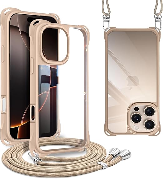 iPhone 16 Pro 用 ケース ショルダー 縄掛け 首掛け 肩掛け ストラップ付き iPhone16Pro 用 カバー 紐付き 斜めがけ TPUバンパー 耐衝撃 薄型 軽量 黄ばみなし ハード ケース カーキ a