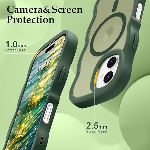 Pepmune iPhone 16 ケース MagSafe対応 ウェーブ 半透明 滑り止め おしゃれ 可愛い 韓国 耐衝撃 指紋防止 ワイヤレス充電 スマホケース ストラップホール付き(ダークグリーン) a