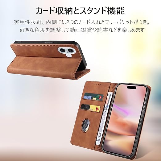 KWATUNG iPhone 16 用 ケース 手帳型 アイフォン 16 用ケース 手帳型 おしゃれ iPhone 16 用手帳型ケース 肌感レザー iPhone 16用 カバー 内蔵マグネット 耐衝撃 iphone16 用スマホケース 手帳型 カード収納 スタンド機能 あいふぉん16用ケース手帳型 全面保護 アイフォン 16 用手帳型 ケース カーキ a