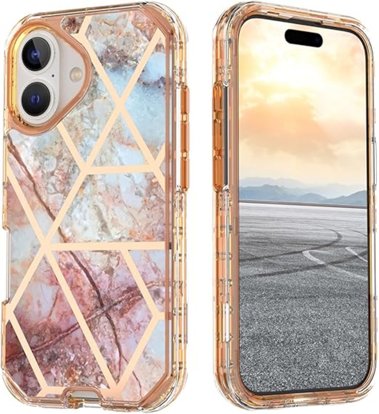 MuZiF iPhone 16 用 ケース 米軍規格の保護 硬い大理風背面 メッキ加工 かわいい 耐衝撃構造 全面保護 黄変防止 擦り傷防止 アイフォン16 用 女の子 女性人気スマホケース(iPhone 16用,ピンク) a