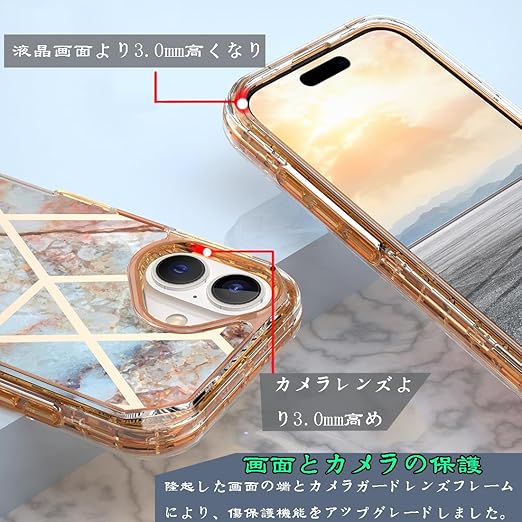 【背面大理石風】素材で作られています、保護力が強いと