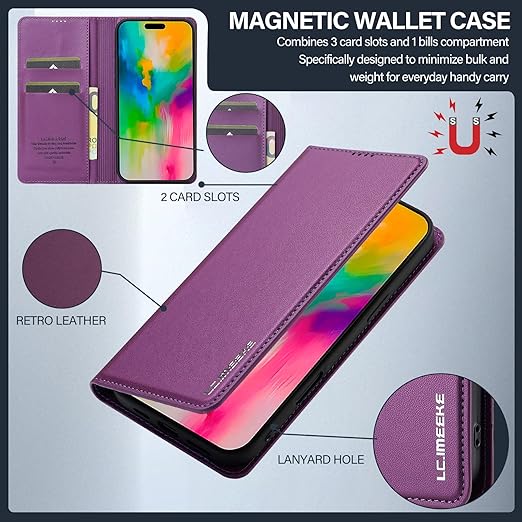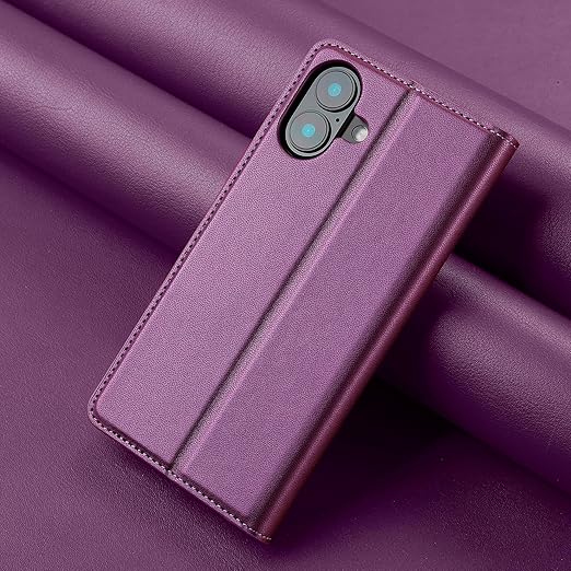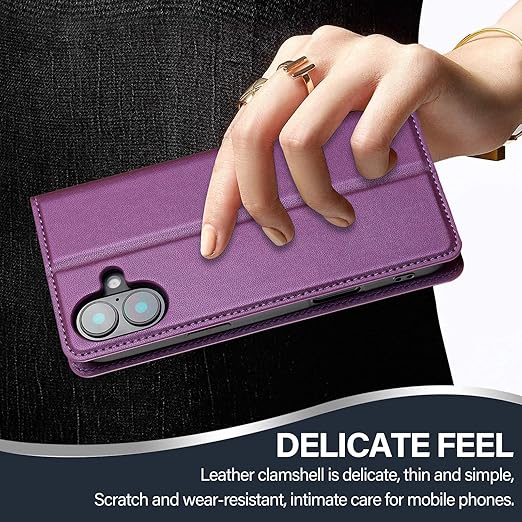 FeeY iPhone16 手帳型ケース アップル iPhone16 ケース 携帯スマホケース手帳型 財布型 カード収納 スタンド機能 マグネット式 放熱性手触りが良い 上質合成皮革 耐衝撃 人気 パープル a