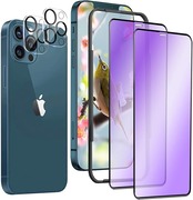 【4枚入りブルーライトカット】iPhone12 pro ブルーライトカット強化ガラスフィルム2枚+iPhone12 pro レンズフィルム 2枚 6.1インチ 近視に防ぎ 指紋付着防止 飛散防止 気泡防止 硬度9H強化ガラス 滑らかなタッチ操作 全面保護フィルム アイフォン12 pro ガイド枠付き a