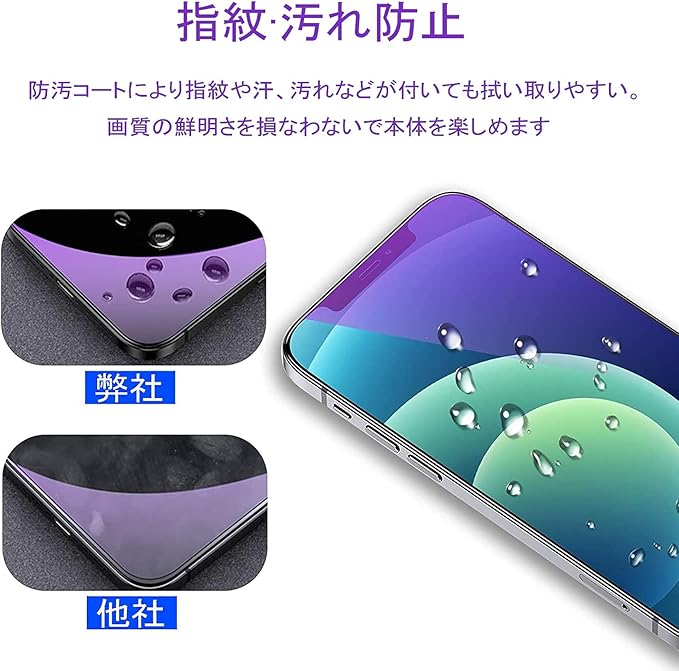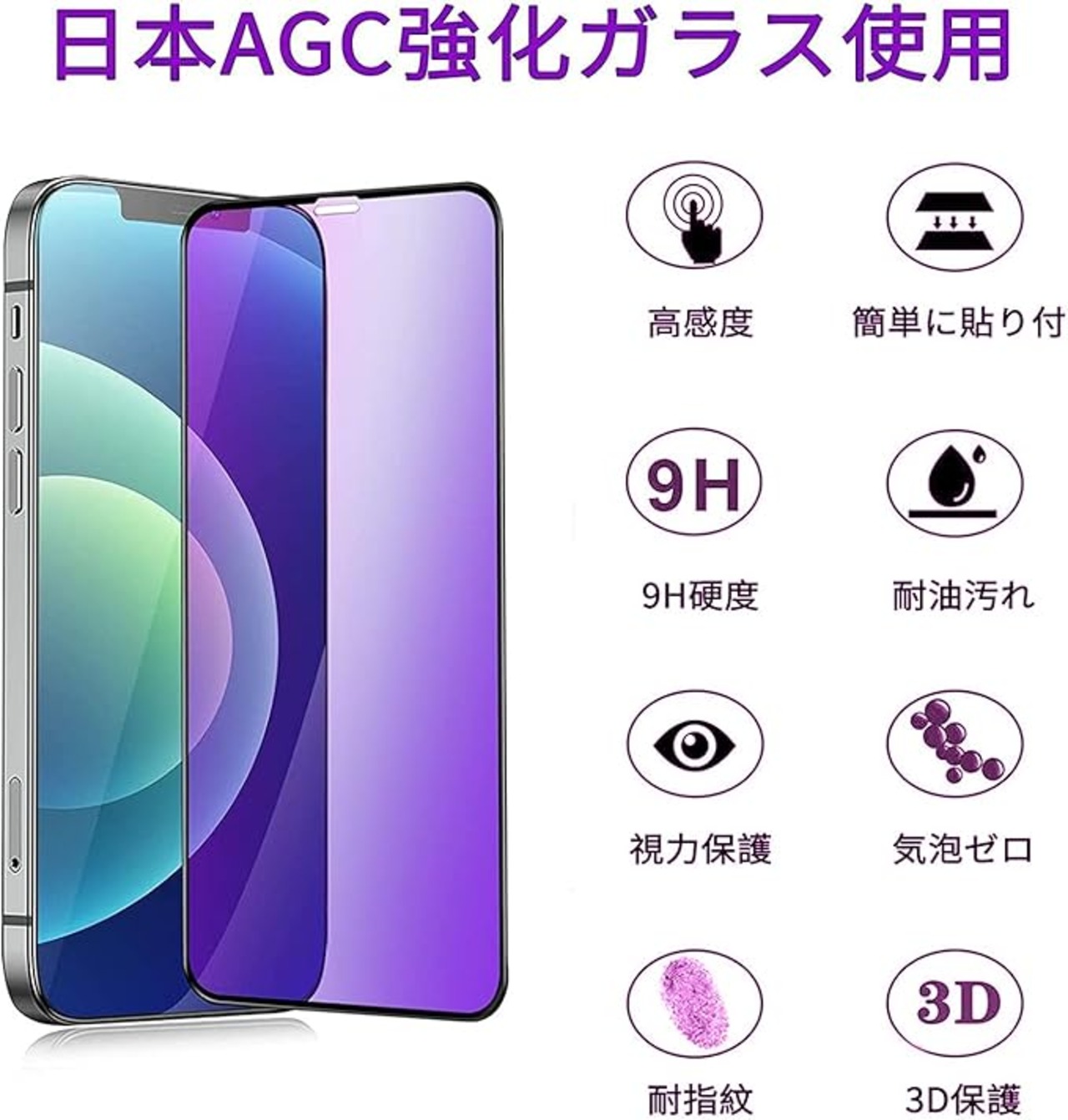 【ブルーライトカット機能、高感度タッチ】高度なブルーライトをカットする反射技術により、 によりブルーライトを大幅にカットでき。 プラズマ疎油性コーティング処理、滑らかな手触り、指紋による汗や油分の残留を防ぎ。