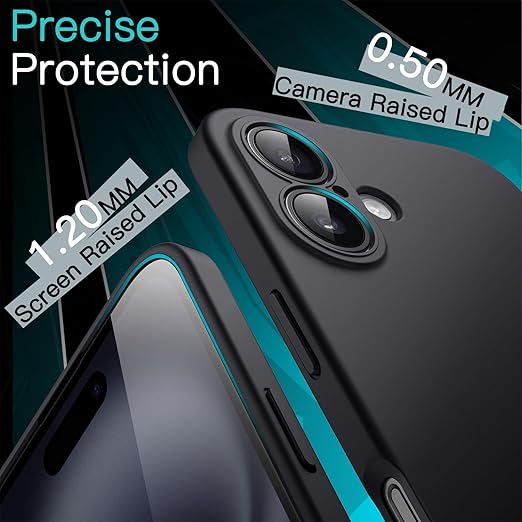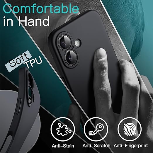 JETech iPhone 16 6.1 インチ 用 スリムフィットケース カメラレンズ完全保護 マット仕上げ ソフトTPU 薄型電話保護カバー 耐衝撃 (ブラック) a
