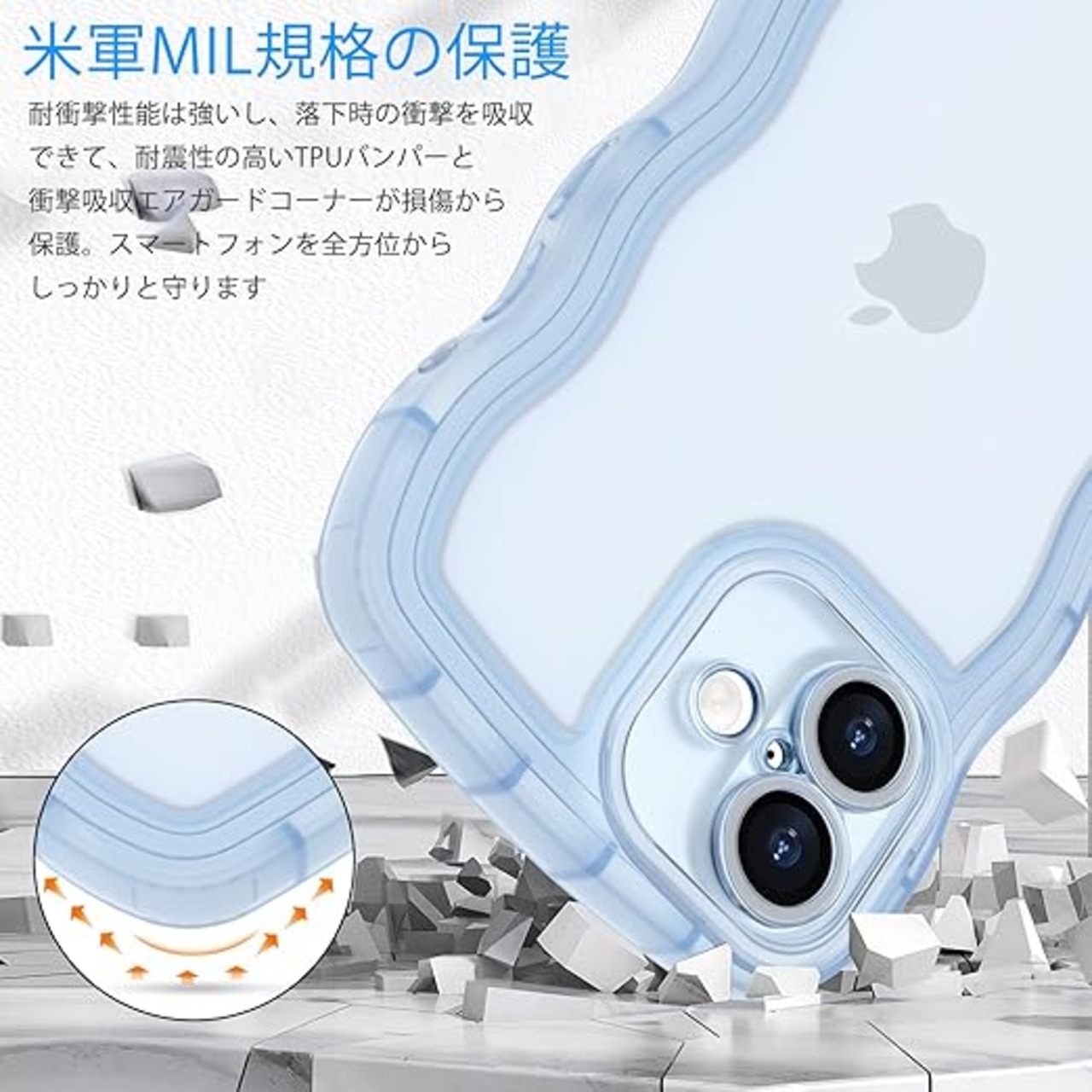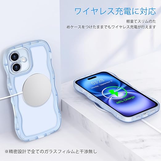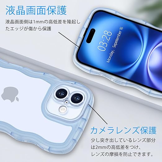 【かわいい波枠】これはiPhone 16 ケース用のクリアユニークな境界デザインで。かわいい波状の