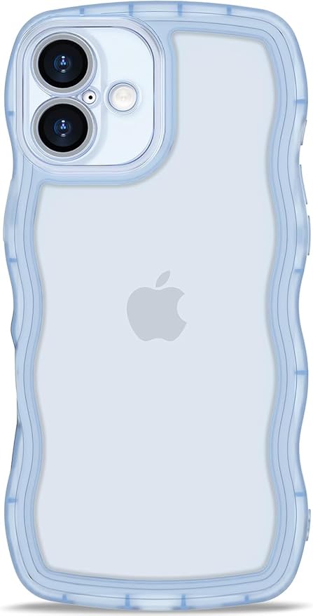 AVETUL iPhone 16 ケース クリア ウェーブ アイフォン16ケース 韓国 うねうね おしゃれ 黄ばみなし かわいい ソフトTPU 滑り止め 薄型 軽量 iPhone 16 スマホケース ワイヤレス充電対応 ストラップホール付き アイフォン 16 ウェーブ カバー 半透明 (クリア/ブルー) a