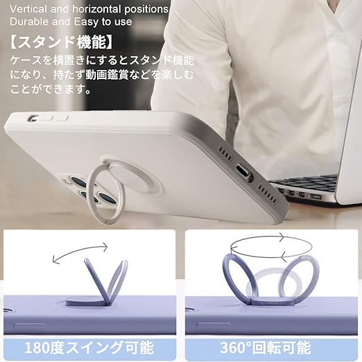 【付属機能】シリコン製ストラップ付き、リング一体型シリコンケース。自由な角度調節ができるリング付き。一指着る式で、指がリングに通り抜け、片手で携帯を操作でき、落下防止します。360度回転可能、180角度調節可能。マグネット対応金属板が付き、マグネット式の車載ホルダーに強く吸着します。リングはスタンド機能としても使用できます。付属のストラップを付けることで更に効果的。*特別ヒント:リング部分は磁石ですので、ワイヤレス充電できません。