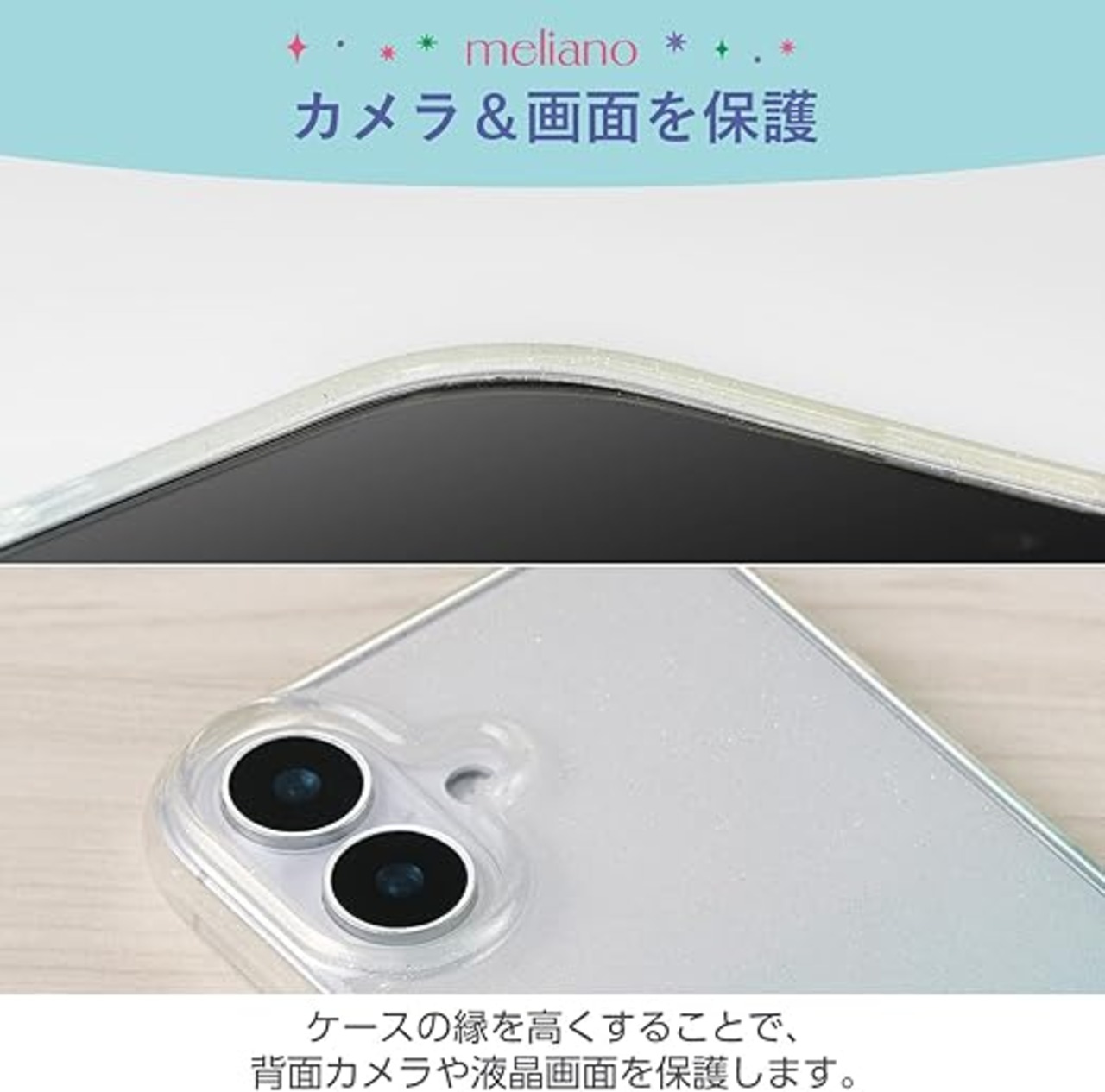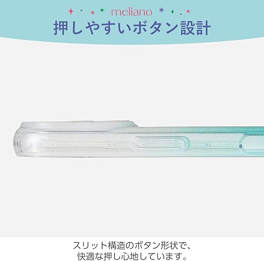 強じんな耐久性としなやかな弾力性をあわせ持つ、TPU(熱可塑性ポリウレタン)素材を使用しています。グラデーションの色合いとキラキラ光るグリッターが美しいmelianoシリーズのソフトケースです。
