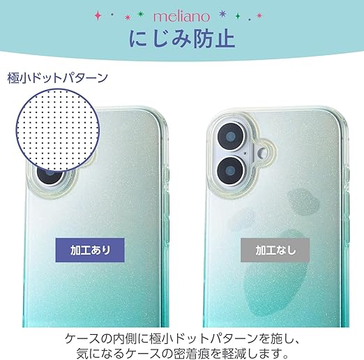 エレコム iPhone 16 ケース クリア グラデーション ラメ マイクロドット加工 ソフト TPU ストラップホルダーシート付 ワイヤレス充電対応 meliano かわいい おしゃれ エメラルド PM-A24AUCWCGGN a