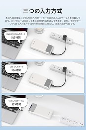 PD出入力・QC3.0急速充電:Power Delivery規格に対応したUSB-Cの出入力ポートは、PD18Wの入力で本体へ充電可能