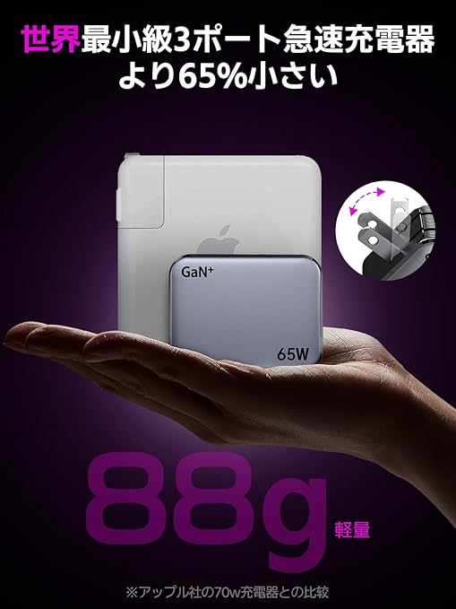 65W 充電器 type-c 【業界超ミニ・超軽量・三台同時充電】タイプc 充電器 usb c 安全で低温 急速充電器 折り畳み式 GaNIII技術 pd 充電器 iphone 3ポート 携帯充電器 火花なし usb-c スマホ 出張?旅行 PD3.0/QC3.0/PPS/SCP規格/PSE認証済 MacBook/タブレットPC用/ノートpc/iPad/iPhone16/Androidなど対応 a