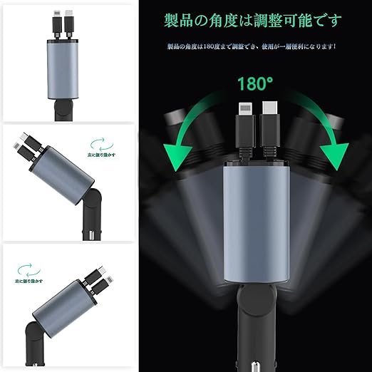 【同時に4台充電可能】2つのポートと2本の巻取り式ケーブルを備え、4台のデバイスを同時に充電可能なシガーソケットです。シガーソケット充電器は2 USBポート(MAX 20W) + 80cmの伸縮式ケーブル2本付き(MAX 100W)の高速充電を装備。家族や友人とのドライブ中でも、全員のデバイスが同時に充電可能なので、バッテリー切れの心配がありません。長距離ドライブやキャンプなど、複数人での移動時にも大活躍します。