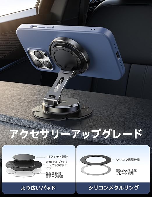 JOYROOM magsafe 車載スマホホルダー ワイヤレス充電 【パネル&台座360°自由調整?高級合金素材】 magsafe充電器 車 マグネット 全金属製 耐久性良い 超強磁力 安定性拔群 スマホスタンド 車 取り付け簡単 3M粘着テープ 繰り返し利用可能 iPhone16/15/14/13/12シリーズに対応 a