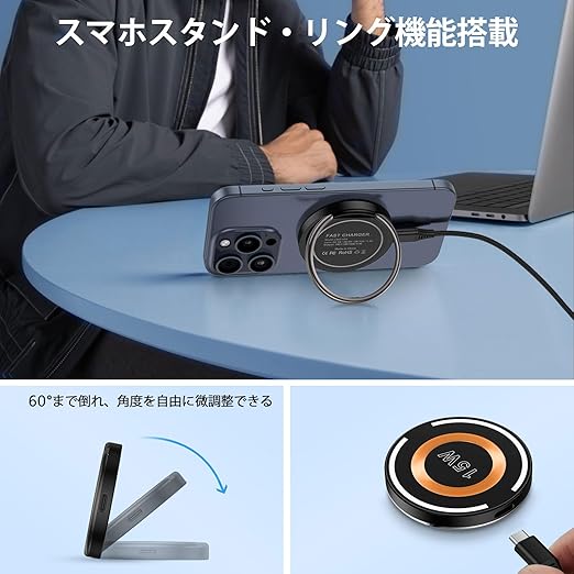 急速充電器 Type-C充電器 PD 急速充電 [20W/PSE認証済み] 磁気ワイヤレス充電器*1個付き マグセーフ充電 最大15W出力 無線充電器 Type-Cケーブル*スタンド機能付き USB-C コンセント iPhone 16充電器 USB C電源アダプタ マグネット式 スマホリング一体型 置くだけ充電 iPhone16/15/14/13/12/11/X/8シリーズ対応 ブラック a