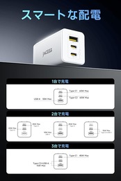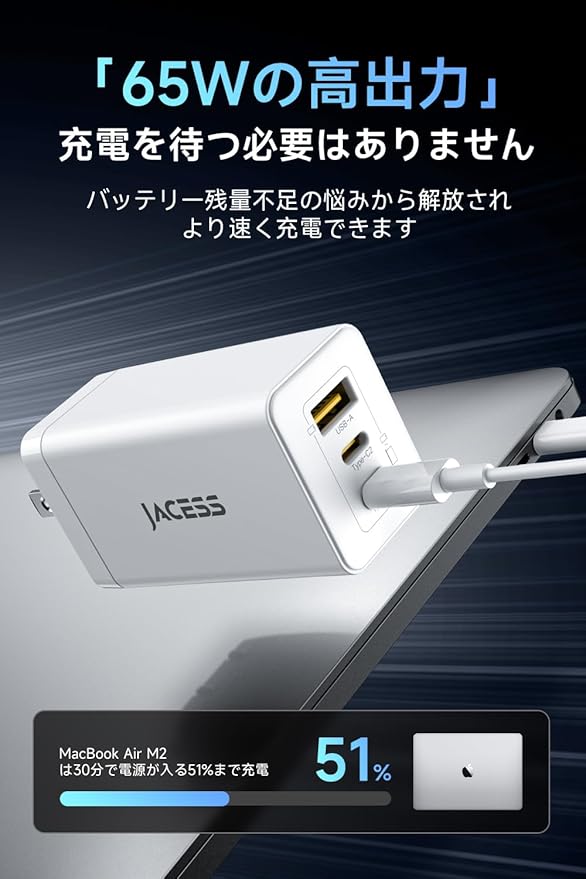 ★【すぐにフル充電! 65W急速充電! 】 当社が発売した65W急速充電器は、スマートフォン、タブレット、ノートパソコンなど、さまざまなType-C関連デバイスを効率的かつ迅速に充電できます。iPhone 16を約30分で60%まで充電でき、MacBook Pro 13をわずか約1.8時間でフル充電できます。 USB-A ポートは、Quick Charge 3.0 (QC3.0)、Huawei SCP/FCP プロトコルをサポートし、Android スマートフォンの 65W 急速充電も実現できま