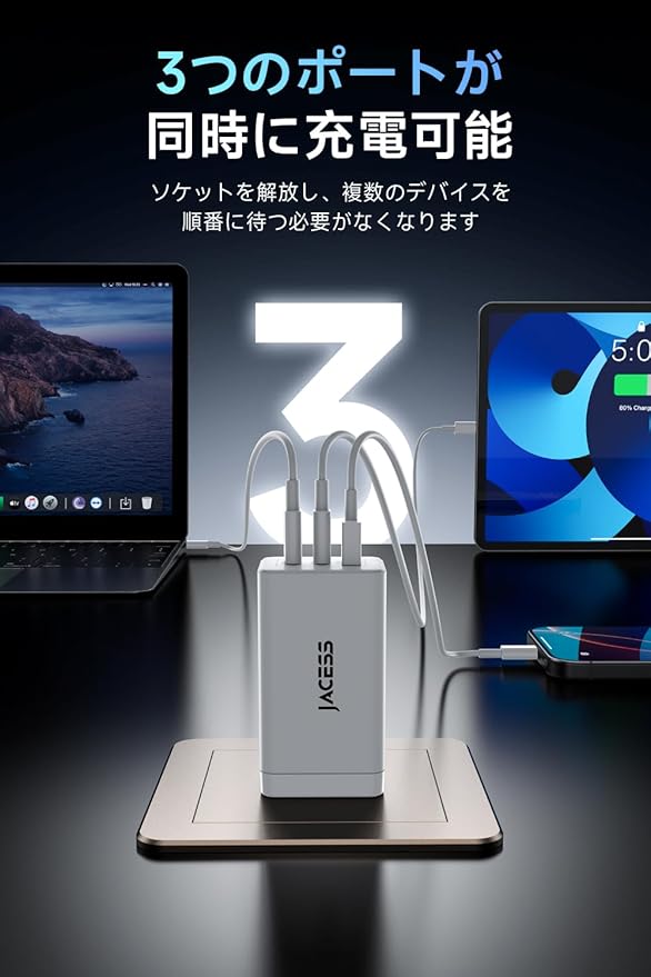 65w PD 急速 充電器 type-c 3台同時に急速充電 【世界最小レベル・超軽量】 usb コンセント iPhone タイプc usb c 充電器 3ポート 折りたたみ式プラグ 携帯 に便利 出張?旅行 GaNIII技術 PD3.0/QC3.0/PPS/SCP規格/PSE認証済 MacBook/タブレットPC用/ノートpc/iPad/iPhone16/Android/Switchなど対応 a