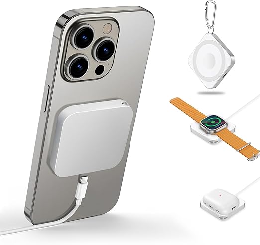 【2025 新設計】ワイヤレス充電器 AFFLIC 業界極小サイズ 3in1 対応 MagSafe充電器 最大15W マグネット式 iPhone16/15/14/13/12シリーズに対応 USB-C/ライトニング ケーブルが必要 最大15W対応 Apple Watch/AirPods/アップルウォッチ全シリーズ 超軽量 方型 出張?旅行?オフィスに最適 (ホワイト) a