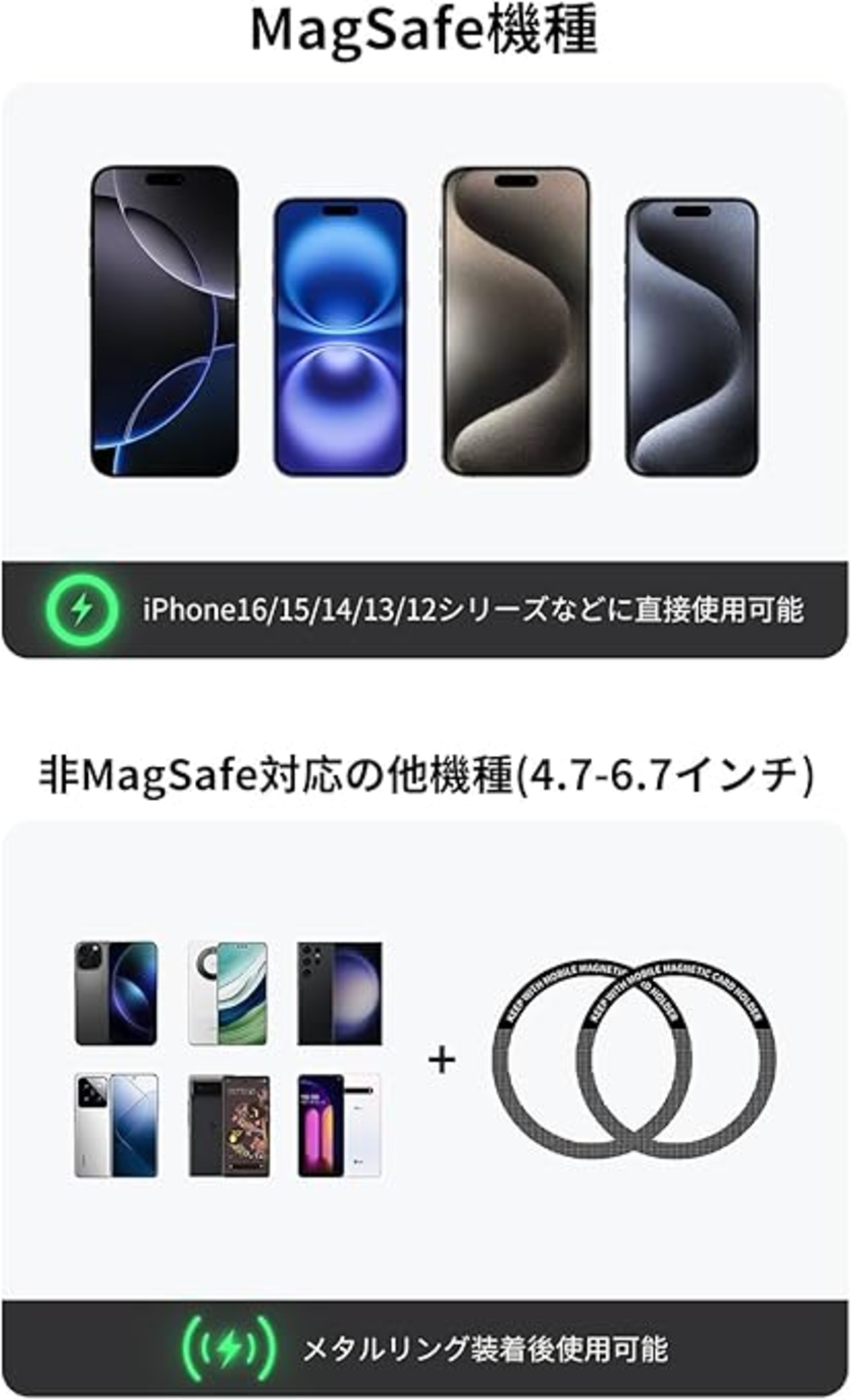 【超強力磁石】 超強力磁石N52を搭載、スマホをにゅっと差し込むだけで、しっかり吸着できます。激しいでこぼこ道路で走行、または急ブレーキ、急カーブをする時にも、スマホは安定に磁石に吸着され、落ちる心配はありません。また、スマホの取り付けも、取り外しも超簡単、片手で操作可能。 *ワイヤレス充電に対応できませんので、購入する前に、予めご確認ください。
