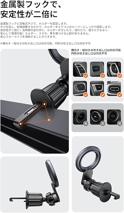 Mcdodo マグネット式車載スマホホルダー 吹き出し口用 車載ホルダー マグネット式ホルダー カーホルダー iPhone16/15/14/13/12/Android/Galaxyなど対応 4.7-6.7インチスマホ対応 超強力N52磁石 360度回転可能 片手操作 取り付け簡単 安定性 メタルリング付き 小型軽量 カー用品 車ホルダー a