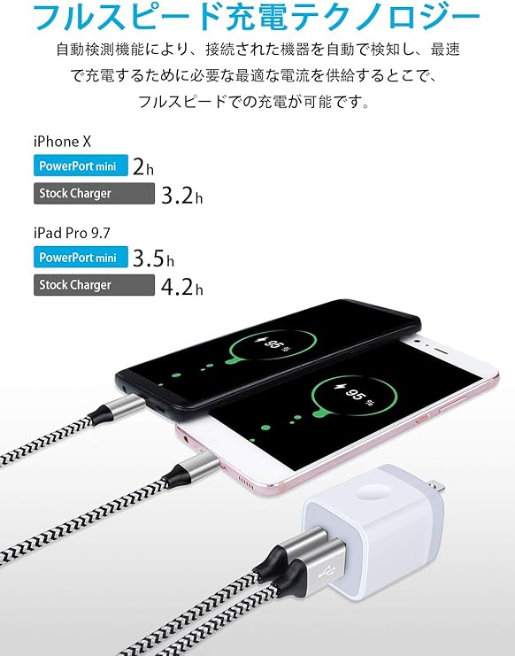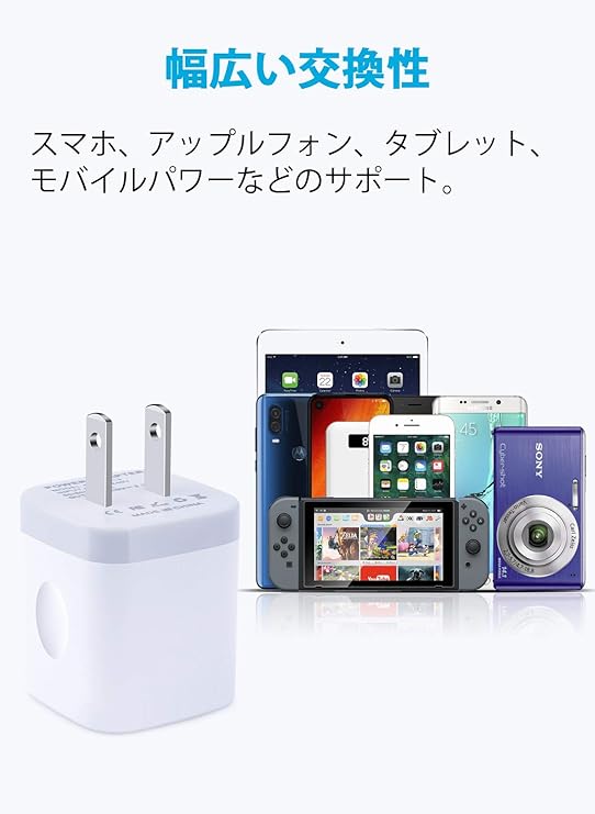 ★ 2台同時に充電可能: USB-Aポートを2個搭載していますが、各ポートは最大2.1Aの出力、スマホやiPhoneなどのUSB充電の携帯を同時に充電でき、2ポートの充電装置に充電時間が節約可能です。(2ポート合計最大2.1A以内)