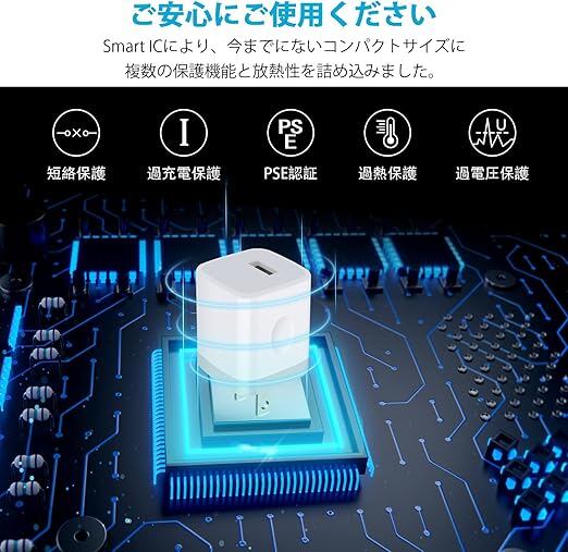 【5つの保護機能】最新なチップ採用され、「過熱保護」「過電圧保護」「過電流保護」などの機能を搭載。コネクタ部分などの熱が軽減されます。