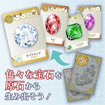 色々な宝石を原石から生み出し、資金に換えよう!資金で工房を経営、さらなる逸品を献納し名声を高めてジニーたちと最高の宝石細工師“頂の星”(アルシラ)をめざすボードゲーム
