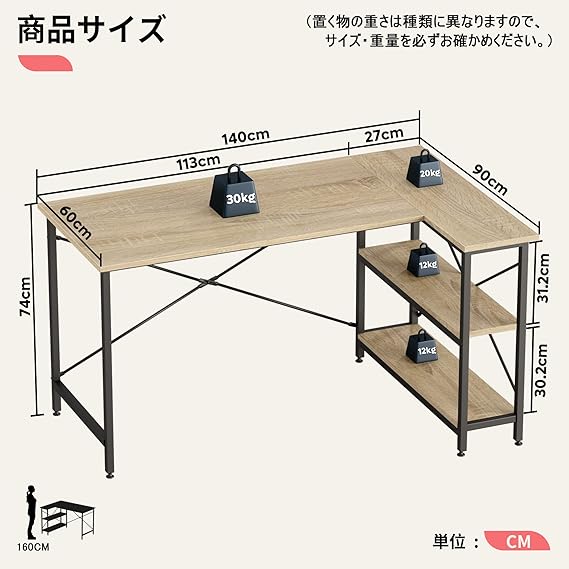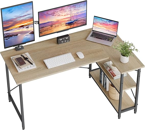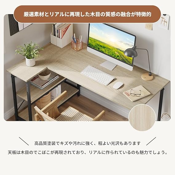 Bestier l字デスク 幅140cm パソコンデスク l字 ゲーミングデスク 机 pcデスク 収納 ラック付き オフィスデスク 勉強机 棚板高さ調節可能 左右入れ替え可 テレーワーク 在宅勤務 オーク a